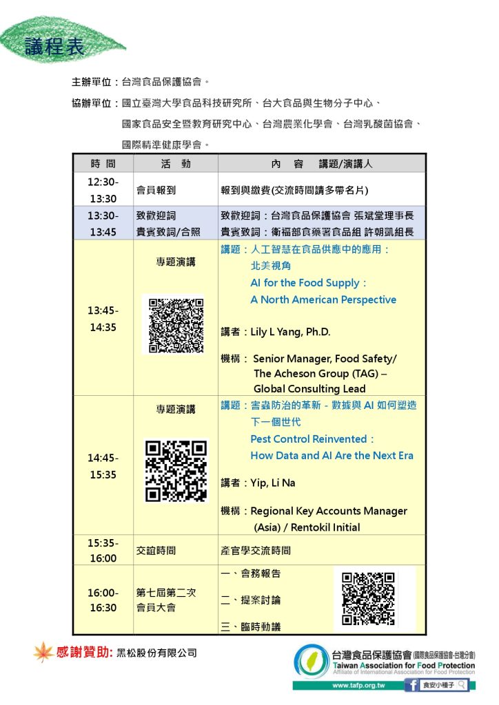 演講主題:AI 於食品保護的運用。