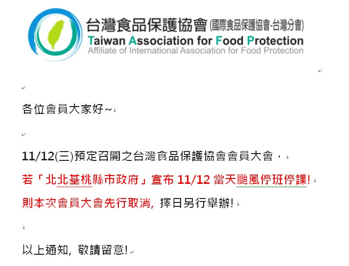 主辦單位:台灣食品保護協會。